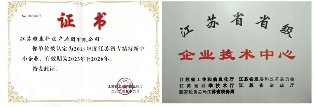 江蘇雅泰喜獲“江蘇省專精特新”、“江蘇省企業(yè)技術(shù)中心”兩項省級資質(zhì)榮譽,標志著江蘇雅泰科學管理體系、技術(shù)研發(fā)能力邁上了更高的臺階!